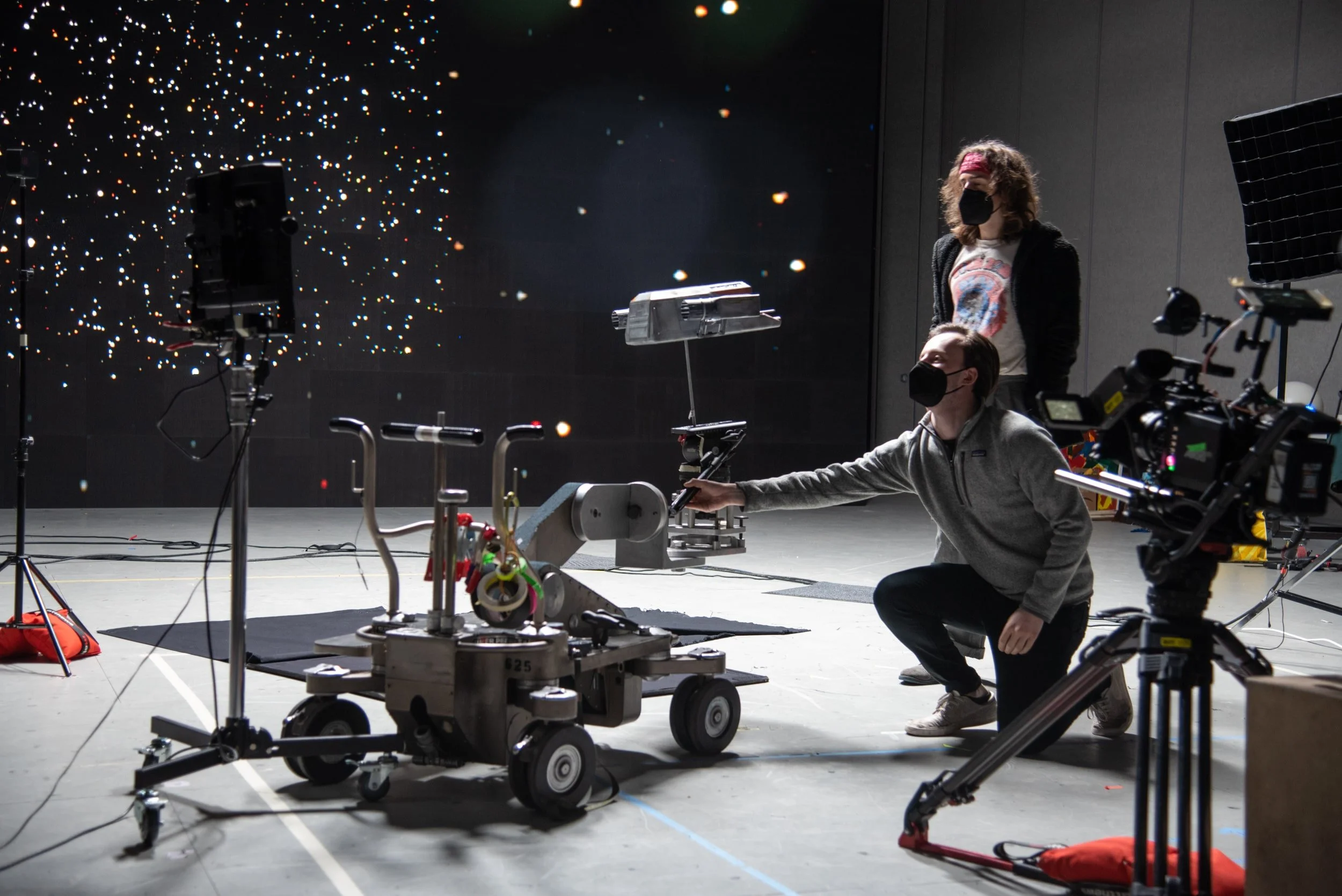 Danny Pakulski (back) and Liam O’Brien (front) on the set of “Portrait of a Universe”